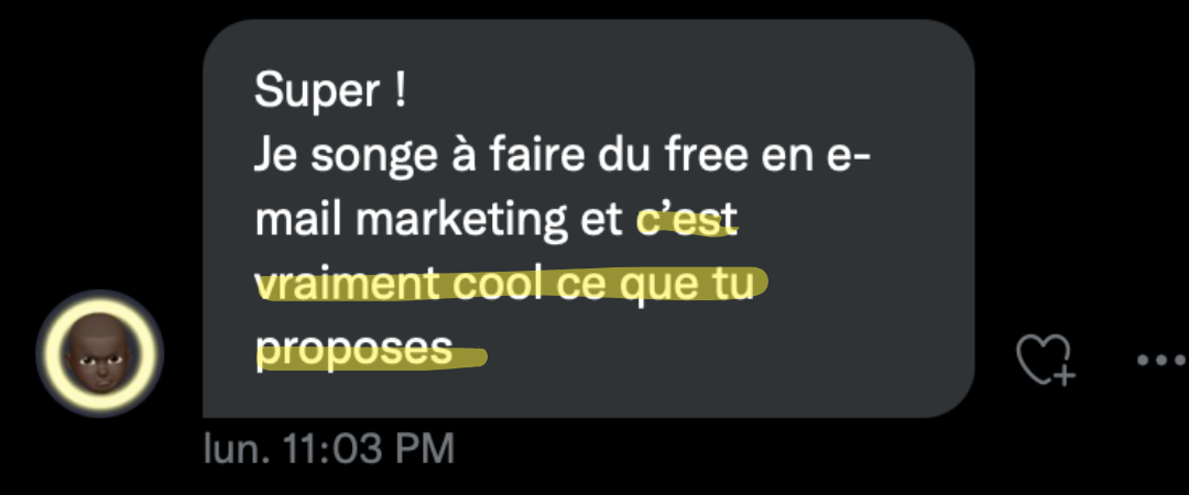(Enfin te plaint pas, au début, les gens devaient payer JUSTE pour rejoindre ma newsletter... tu as le jeu en mode facile maintenant qu'elle est gratuite).