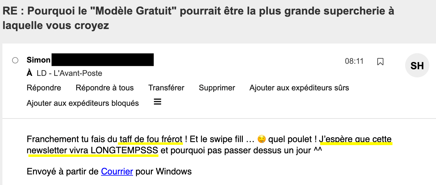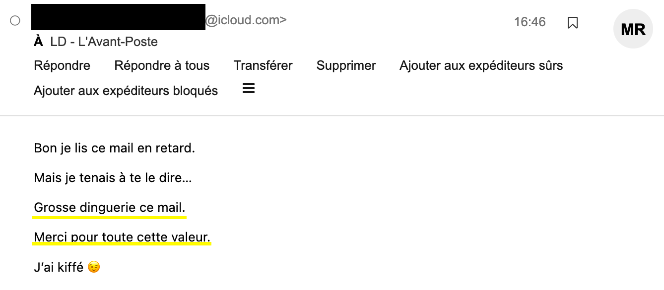 ATTENDS QUOIIII ? Mais j'envoie un mail par JOUR et cette personne me dit que c'est la SEULE newsletter qu'il lit réellement ???!